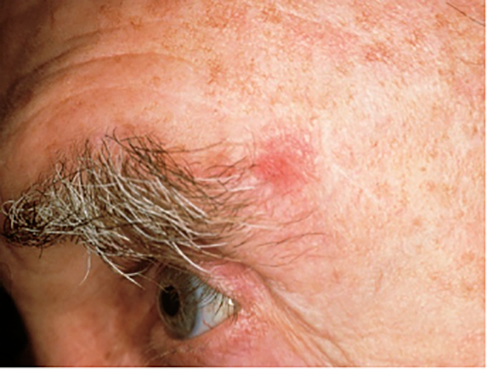 Where is it usually found? These tumors usually appear as firm, painless lesions or nodules on a sun-exposed area (about half of the time on the head and neck, and frequently on the eyelids).