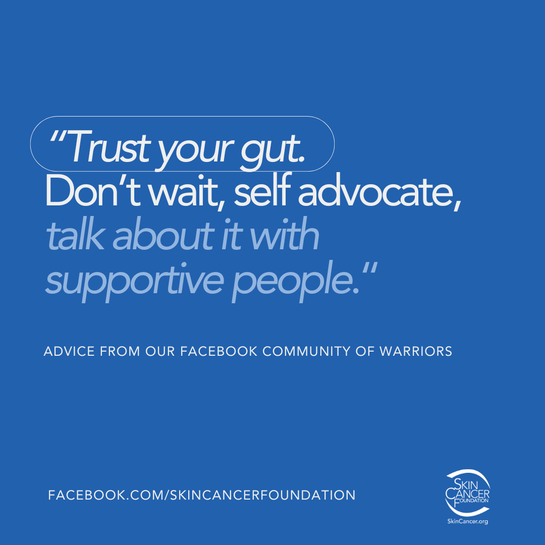 - Take a deep breath. You’re stronger than you think, and you will get through this. See below for advice from people who have battled skin cancer and want to support you.