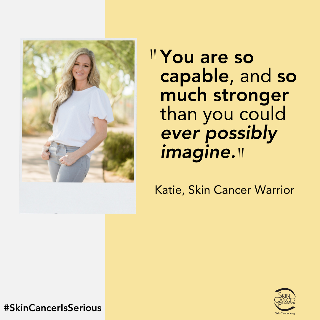 Katie’s message to all skin cancer warriors: “Do things for yourself. Set healthy boundaries. Practice sun safety. You have so many people on social media to support you. You’ve got this!”