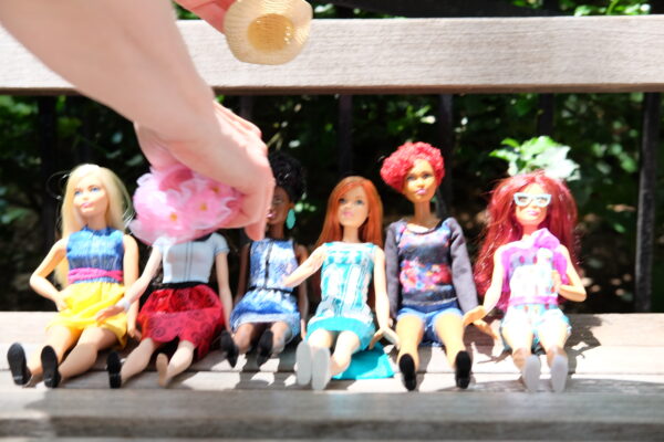 Before my colleague Paul and I could take the dolls to the park for the photos you see here, though, I hunted for sun-protective gear for them, especially hats. Guess what? Not so easy to find. I had to turn to eBay to locate some vintage straw Barbie hats from the 1970s, and then to Etsy for handmade ones. (Mattel, are you listening?)