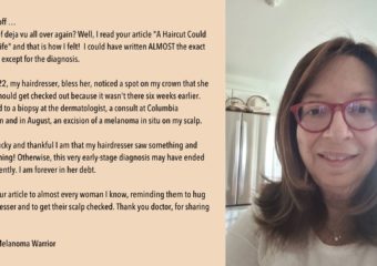 When Ronnie walked into the salon in June 2022, she never imagined that her life was about to take a frightening turn. As her hairdresser parted Ronnie’s hair for a cut, she saw something new on Ronnie’s scalp that turned out to be a melanoma.