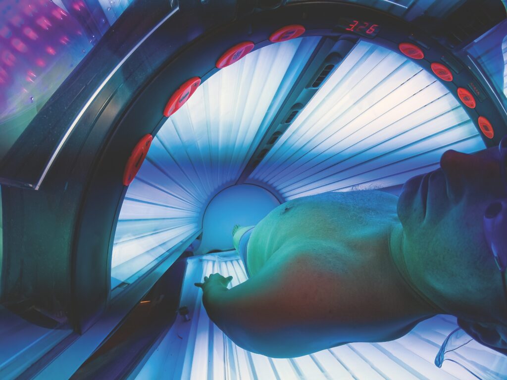 Research shows that 97 percent of women who are diagnosed with melanoma before the age of 30 had a history of tanning bed use. And there’s a 75 percent increase in risk of developing melanoma if you’ve used a tanning bed before the age of 35. Even one session is dangerous. A 2021 review of 54 studies, in fact, confirmed that indoor tanning is associated with increased risk of early-onset melanoma and nonmelanoma skin cancers, especially in those who used indoor tanning from a young age.