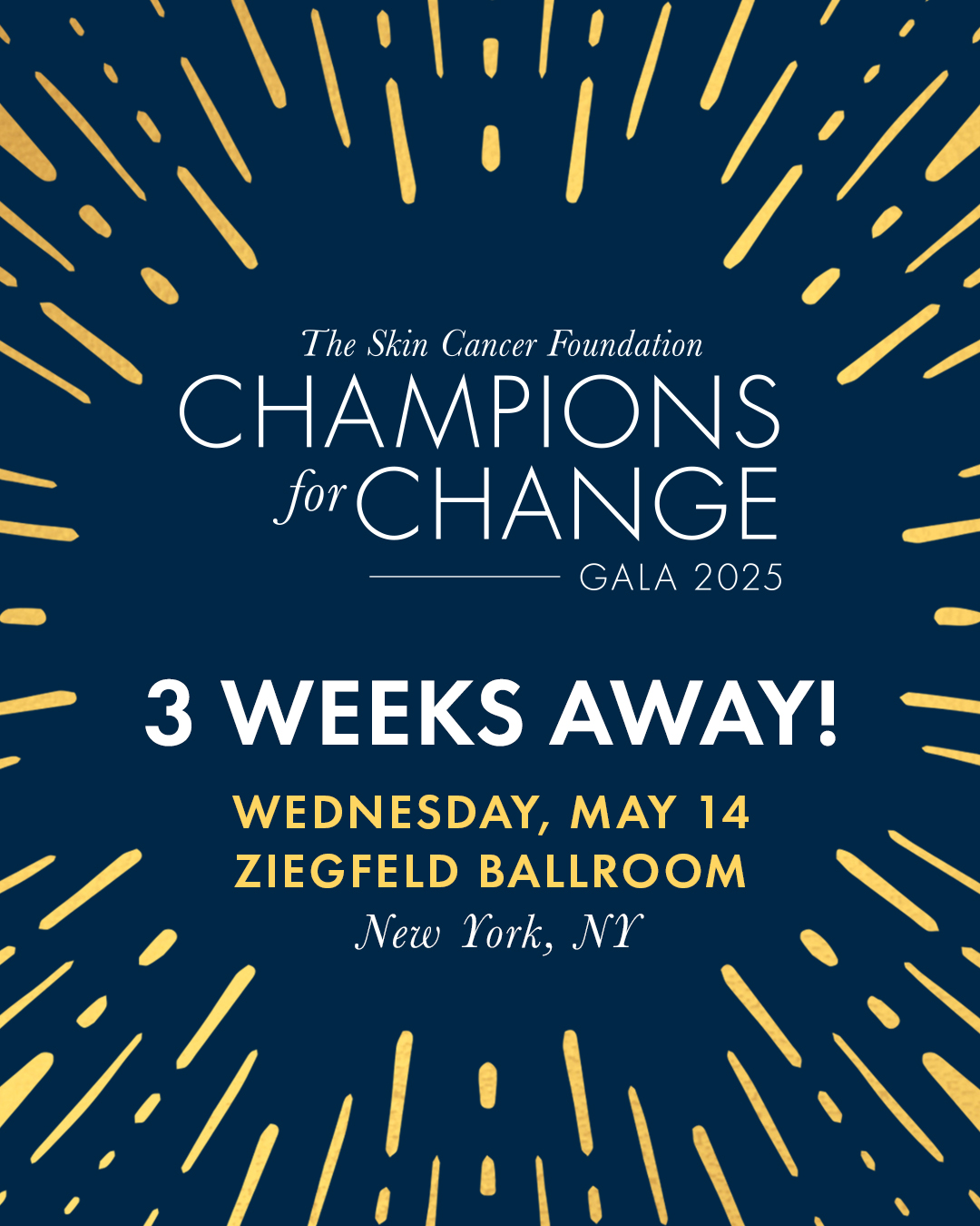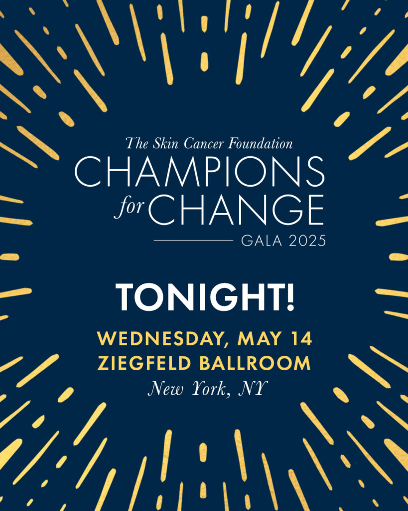 - May is Skin Cancer Awareness Month, and I hope you’ll support The Skin Cancer Foundation Champions for Change Gala! Together we can fight skin cancer and save lives. SkinCancer.org/gala #SCFGala