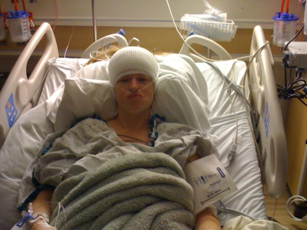 Katie in the hospital, recovering from surgery.