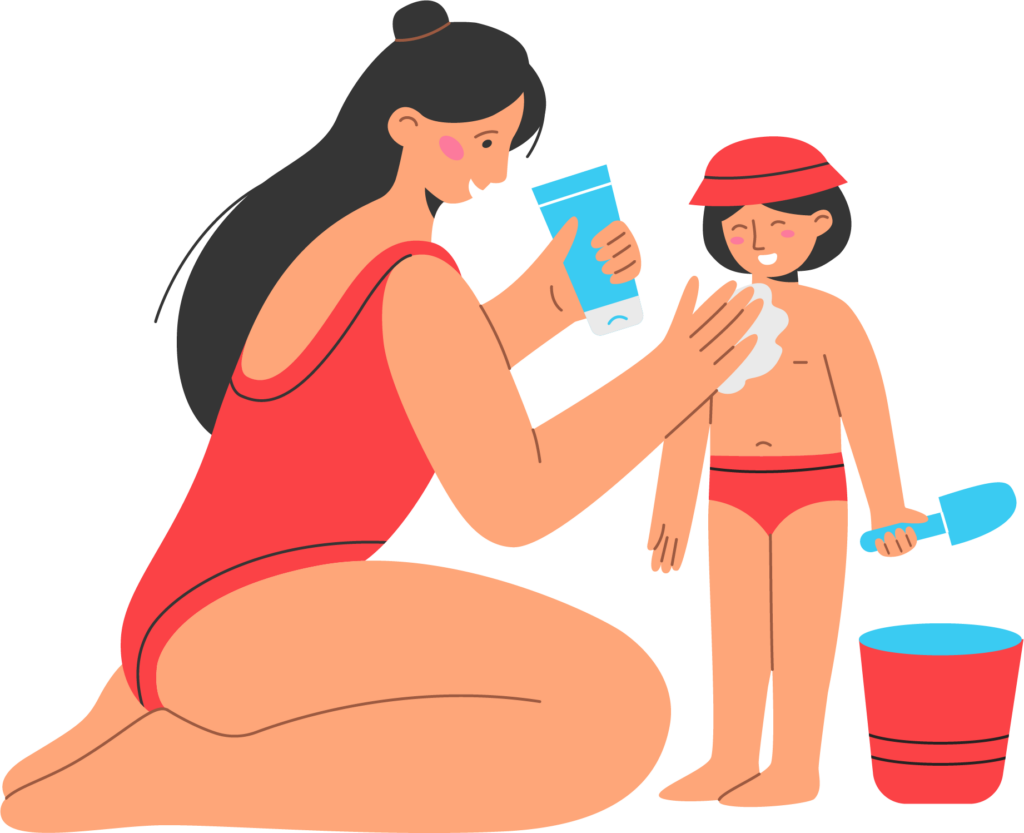 Infants: It’s best in the first six months to keep infants out of the sun rather than use sunscreen on their sensitive skin. Clothing should cover baby’s vulnerable arms and legs, and don’t forget to use hats, sunglasses and stroller sun shades.